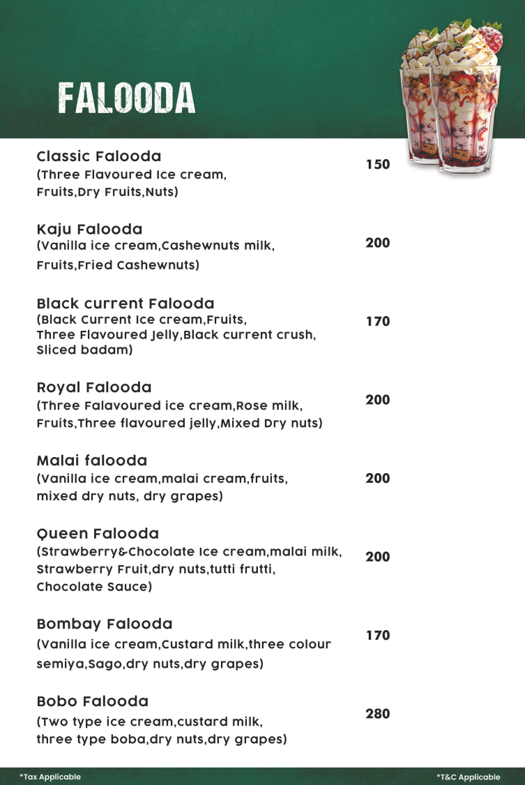 (Three Falavoured ice cream, Rose milk, Fruits, Three flavoured jelly, Mixed Dry nuts)